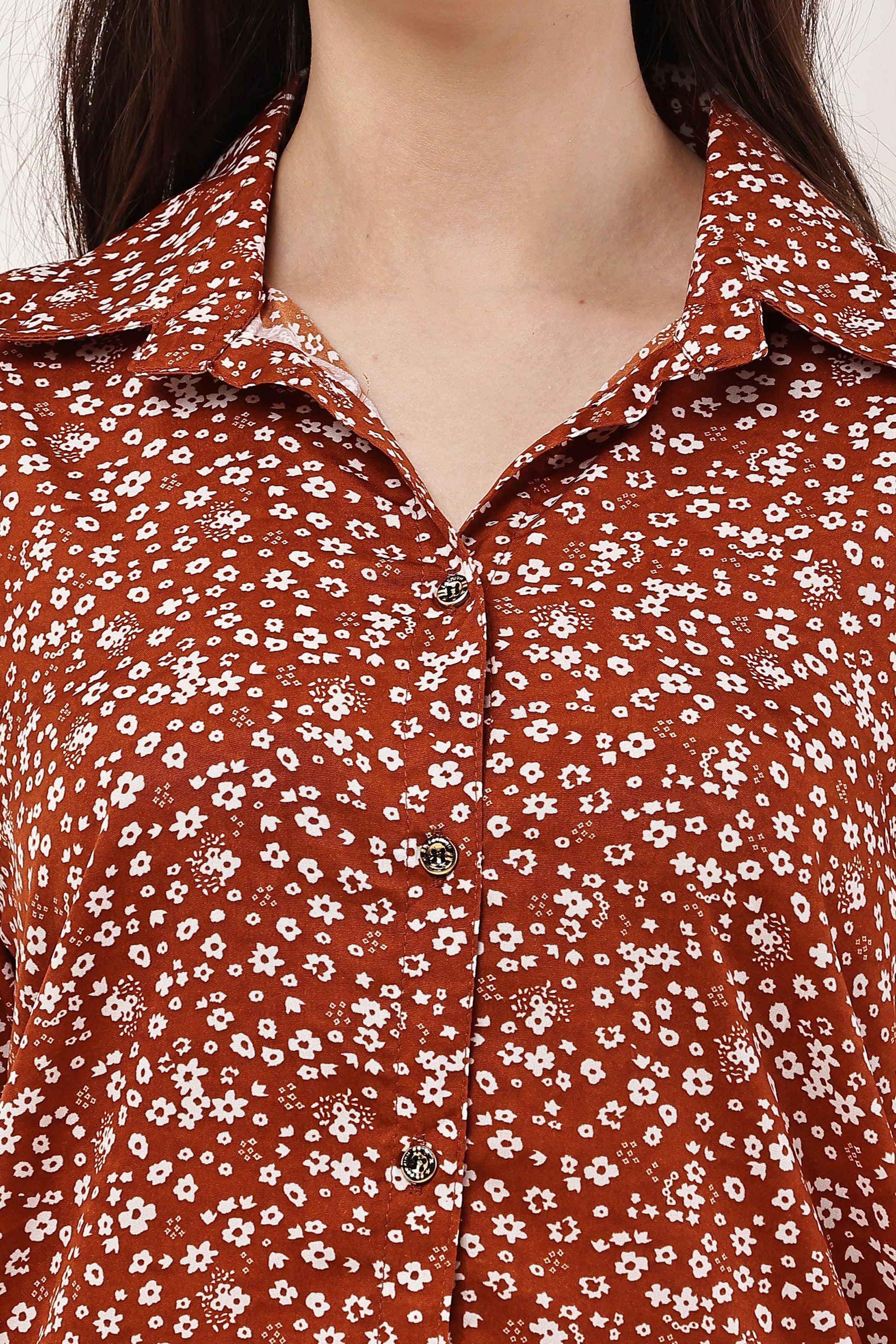 Upgrade your everyday style with this elegant women’s printed co-ord set. Designed for comfort and effortless fashion, this matching set features a long-sleeve button-down shirt paired with relaxed-fit trousers. The all-over floral print on a rich rust-brown base adds a trendy yet timeless appeal, making it perfect for casual outings, home wear, or travel.