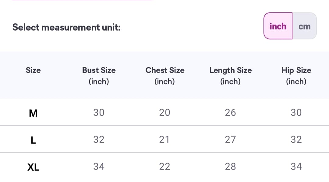 What are your sizing options?